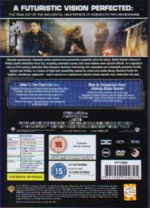 | Disc 01 | Introduction by Director Ridley Scott Three Filmmaker Commentaries, Including One by Ridley Scott Dangerous Days: Making Blade Runner - Definitive Documentary Incorporating Outtakes, Deleted Scenes and All-New Interviews. The Ultimate Look at the Movie's Difficult Creation and Controversial Legacy. |