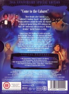 | ' Cabaret : A Legend In The Making' documentary. 'Kit Kat Klub Memory Gallery' - reminiscences from cast and crew members. 'Re-creation Of An Era' documentary. Original theatrical trailer. 50 pages of production notes and trivia. Interactive songs menu. Comprehensive stills gallery. |