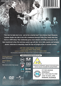 Anna Kalman is an accomplished actress who has given up hope of finding the man of her dreams. She is in the middle of taking off her face cream, while talking about this subject with her sister, when in walks Philip Adams. She loses her concentration for a moment as she realizes that this is the charming, smart, and handsome man she has been waiting for.Cast