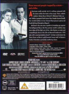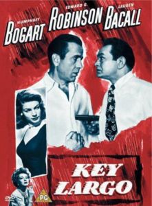 A hurricane swells outside, but it's nothing compared to the storm within the hotel at Key Largo. There, sadistic mobster Johnny Rocco (Robinson) holes up -- and holds at gunpoint hotel owner Nora Temple (Bacall), her invalid father-in-law (Barrymore) and ex-GI Frank McCloud (Bogart).Cast