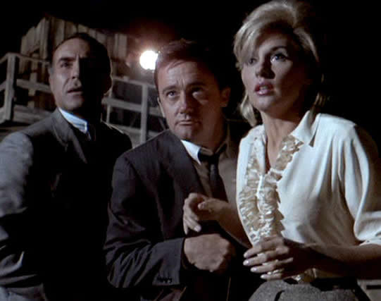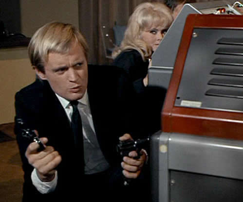 Thrush is conducting an operation using a mortuary as a front. One Thrushman appears to commit suicide. Another is falling for the "dead" man's girlfriend. UNCLE is using the girlfriend, whose name is Jojo Tyler and the "dippy blonde" of the episode title, to break the operation.46