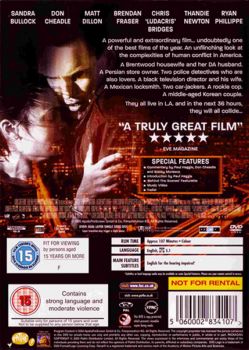 | Commentary by Paul Haggis, Don Cheadle and Bobby Moresco. Making Of Featurette. Introduction by Director Paul Haggis. Bonus music video. Theatrical trailer. |