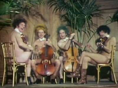 East Scottish Airways faces a bomb threat; organist talks about the place of the nude man; announcer talks about laughter; credits; `and now for ten seconds of sex'; announcer talks about returning MPFC; new housing built entirely by characters from 19th Century literature; characters from Milton's Paradise Lost build an eighteen level bypass; flats built by Hypnosis featuring the Amazing Mystico and Janet `Yes Janet, a quiet shy girl...'; outburst of capital punishment; morgue attendants listen to Radio 4 and are toured by a judge `Iah, Iah, Iah I'm a good little doggie'; finals of the Olympic Men's Hide and Seek in the record times of 11 years, 2 months, 26 days, 9 hours, 3 minutes and 27 seconds; smarmy announcer, chicken knight; the Cheaplaughs visit their neighbors, sixteen ton weight; Probe looks at bullfighting; animation- push of a button, two growing trees; live feed from the planet Algon where a simple pair of split crotched panties are virtually priceless; extortionist readsDirector: Ian MacNaughton