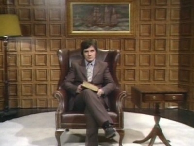 Thames Television announcer; organist, announcer, Hermit; The British Show Biz Awards presented by Her Royal Highness the Dummy Princess Margaret, the remains of Sir Alan Whattle, new suit sketch, lemon curry, the Oscar Wilde Sketch `Your majesty is like a stream of bat's piss'; animation- lady powders nose, Charwoman!; more awards, David Niven's fridge, Pier Paolo Pasolini's The Third Test Match; Mrs. Zambezi gets a new brain; man wants to donate urine; wife swapping play by play, formation wife swapping, Grandstand- coverage of wife rugby; credits of the year; more Show Biz awards, The Dirty Vicar Sketch `I like TITS!'Director: Ian MacNaughton