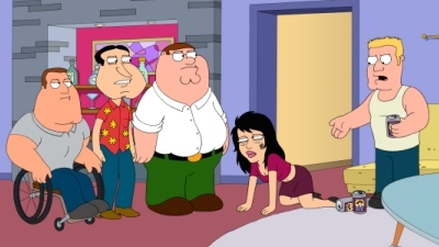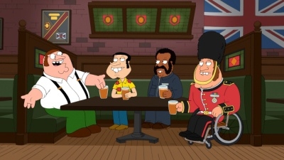 Season 10 finale: One mini-episode introduces a British version of the Griffins. A comedian takes over Quahog in another. And a third views the world from Stewie's POV. Then Joe cheats on the cheating Bonnie; and it's Peter vs. the angry chicken (again).Director: Greg Colton