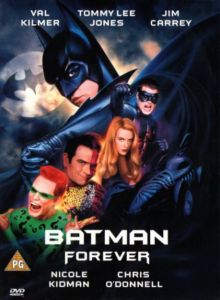 The Dark Knight of Gotham City confronts a dastardly duo: Two-Face and the Riddler. Formerly District Attorney Harvey Dent, Two-Face believes Batman caused the courtroom accident which left him disfigured on one side. And Edward Nygma, computer-genius and former employee of millionaire Bruce Wayne, is out to get the philanthropist; as The Riddler. Former circus acrobat Dick Grayson, his family killed by Two-Face, becomes Wayne's ward and Batman's new partner Robin.Cast