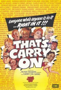 That's Carry on is a 'best of the carry on's' movie with Kenneth Williams and Barbara Windsor introducing clips from all the Carry On movies (from Carry on Sergeant to Carry on Behind). The two regulars converse at the Rank Film building to host the film, with their own running gags involving Barbara's "assets" and Kenneth's desperate need of a toilet!!!Cast