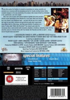 Woody Allen's fourth film, consisting of a series of short sequences loosely inspired by Dr. David Reuben's book of the same name. The film was an early smash for Allen, grossing over $18 million dollars in the U.S. alone against a $2 million dollar budget. The credits at the start and close of the film are playedCast