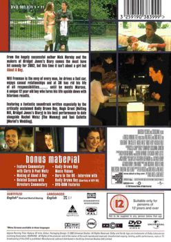 | "The Making of..." Documentary Deleted Scenes Director's Commentary DVD ROM Features Interactive Menus Music Videos Scene Selection DVD EXTRASFeature commentary with Paul and Chris Weitz. Making of. Deleted scenes with director's commentary. Badly Drawn Boy videos. 'Born In The UK' - interview with Badly Drawn Boy. DVD-ROM features.Soundtrack LanguagesDolby Digital 5.1: EnglishTechnical DetailsCertification: 12Duration: 97 minsFormat: DVDRegion: 2Presentation: WidescreenAspect Ratio: 2.35 Anamorphic Wide ScreenCat. No: 9038399(VISION VIDEO LTD.) Category: Drama:Comedy Subtitles: English, English for the hearing impaired |