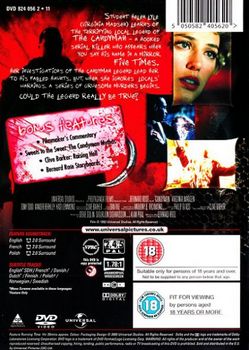 | Interactive menus, Animated menus, Scene access, Enhanced for WideScreen TV, Subtitles (English, German, Greek, Hindi, Arabic, Polish, Hungarian, Czech), Bonus footage, Trailers, BiographiesInteractive menus, Enhanced for WideScreen TV, Subtitles (rench, Danish, Dutch, Finnish, Polish, Norwegian, Swedish), Subtitles for hard of hearing (English), Bonus footage, Commentary (Filmmakers), Other documentaries ('Sweets to the Sweet: The Candyman Mythos', 'Clive Barker: Raising Hell'), Image gallery |