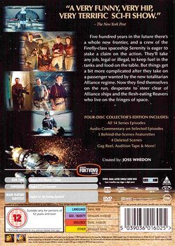 | Disc 01 | Audio Commentaries From Directors, Producers, Writers & Creator Joss WhedonDeleted ScenesFeaturettes:Serenity: The Tenth CharacterThe Making Of FireflyJoss Whedon Tours The SetFootage From Alan Tudyk's AuditionJoss Whedon Sings The Firefly ThemeGag ReelEaster Egg |